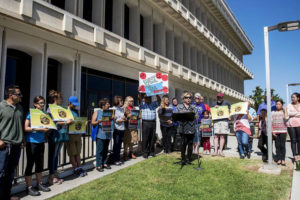 Residents hold a rally calling for an end to the separation of immigrant children and parents who are detained by the U.S. Immigration and Customs Enforcement agency, outside the Merced County Administration Building. (Photo by Andrew Kuhn)